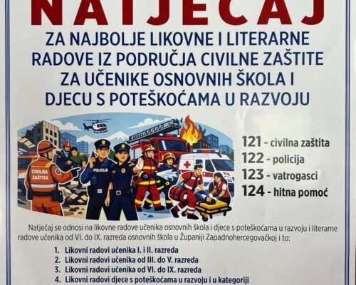 Pozivamo sve učenike da pokažu svoju kreativnost i izraze svoje viđenje važnosti civilne zaštite kroz likovne radove. Želimo vam puno uspjeha!