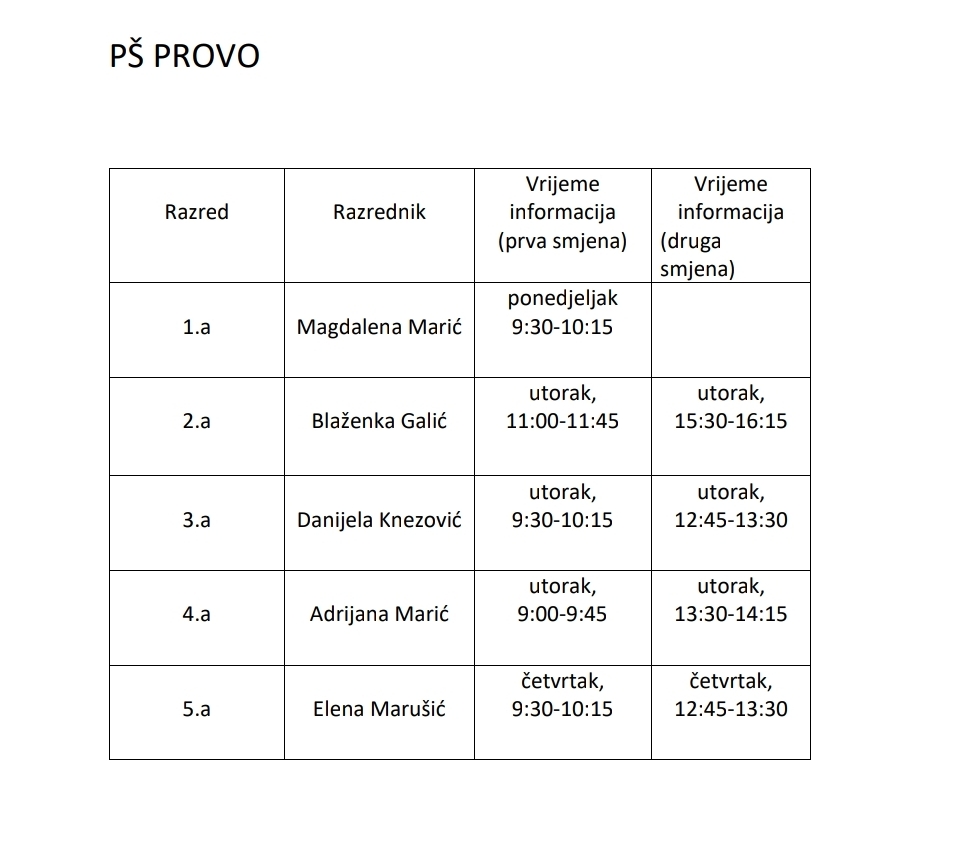 Prijem roditelja – razredna nastava