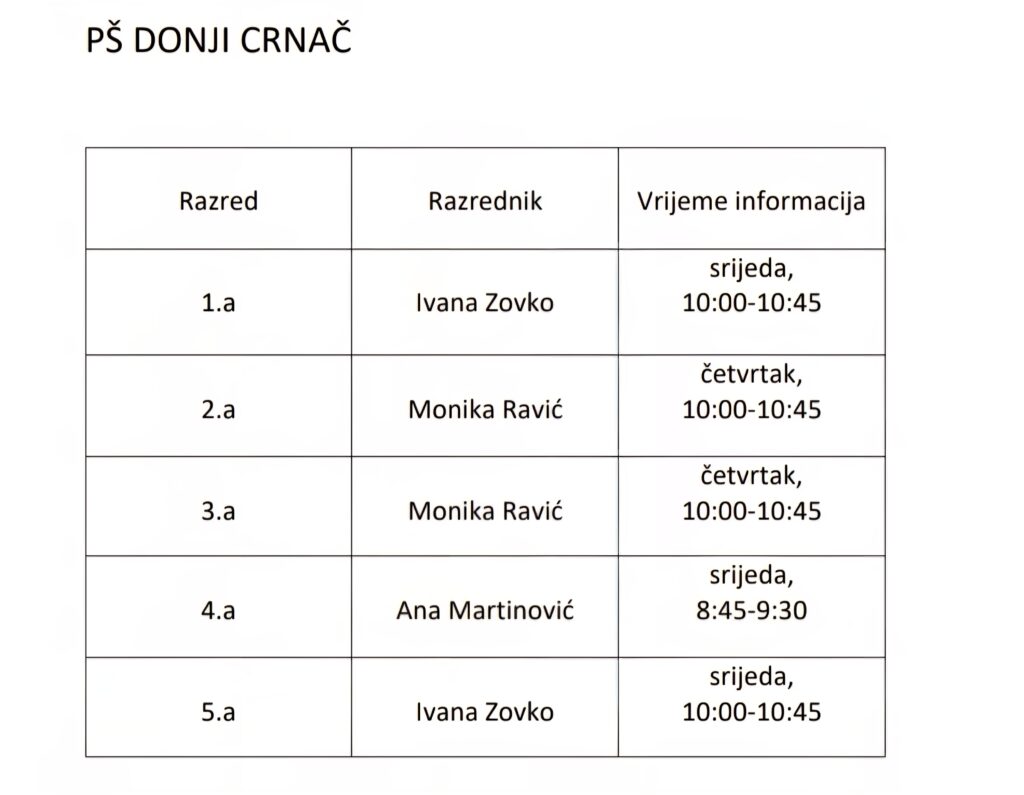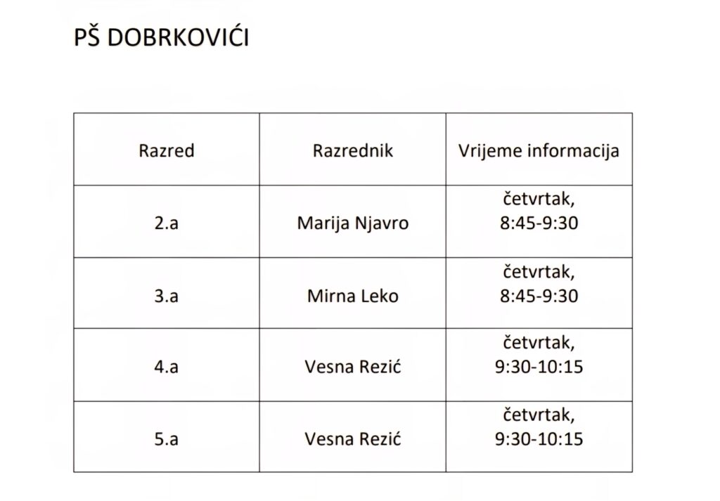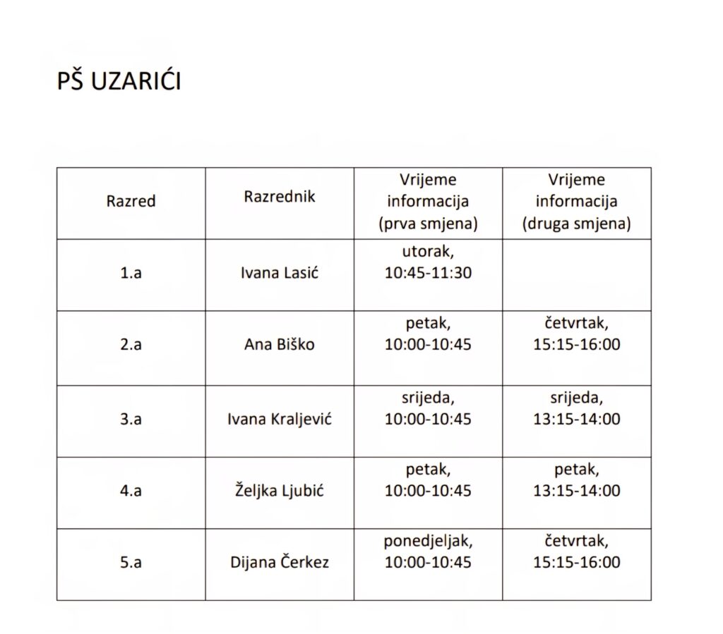 Prijem roditelja – područne škole