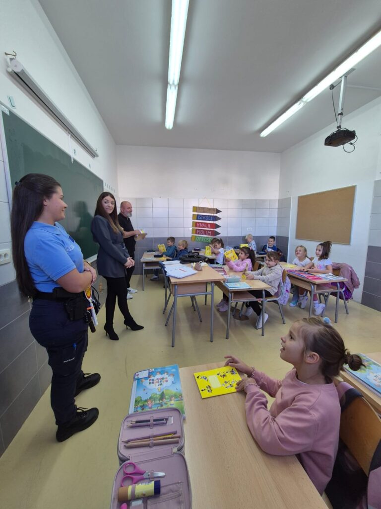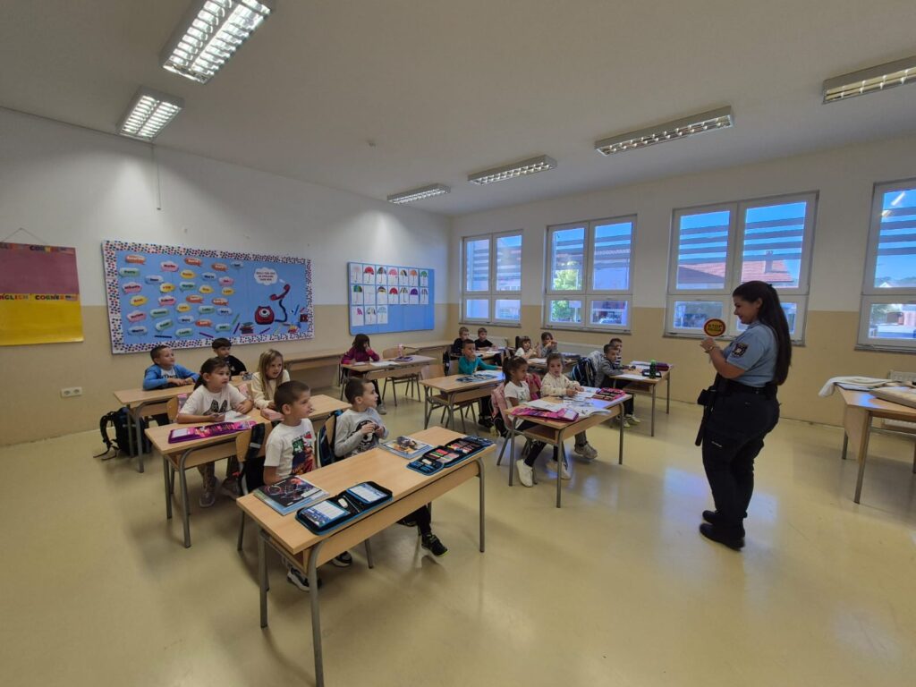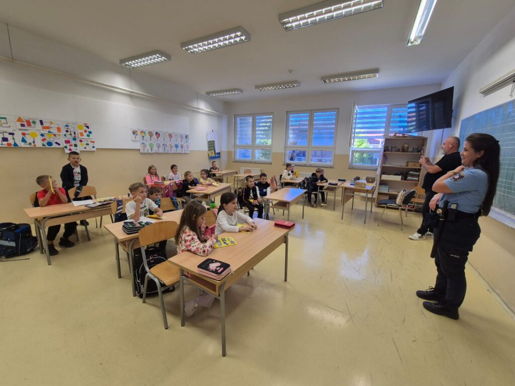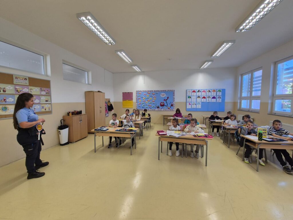 Danas, 30. rujna 2025. godine službenici Policijske uprave Široki Brijeg i djelatnici Auto moto kluba su posjetili učenike prvih i petih razreda s ciljem upoznavanja djece s pravilima kretanja u prometu, a posebno na njihovom putu od kuće do škole. Podsjetili su ih koliko je važno vezati sigurnosni pojas tijekom vožnje, kao i sjediti u autosjedalici. Na kraju posjete naši petaši su imali priliku biti u ulozi policajca te uživo vidjeti kako izgleda jedan dan policijskog službenika kada je u pitanju reguliranje prometa. Zahvaljujemo službenicima prometne policije Široki Brijeg, kao i djelatnicima Auto moto kluba.