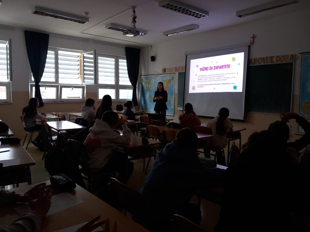 Osim samih radionica, na školskom hodniku postavljen je svojevrsni štand s nekoliko načina poticanja učenika na razmišljanje o svom psihičkom stanju. Ideja je bila da učenici, vidjevši štand, zastanu i razmisle o tome kako se osjećaju, na čemu su zahvalni, što dobro mogu učiniti za drugoga,… Također, postavljene su upute za jednu, lako pamtljivu, mindfulness tehniku koju učenici, ali i nastavnici, mogu primijeniti u situacijama kada se osjećaju tjeskobno i anksiozno. Unatoč učestalim govorima o mentalnom zdravlju, još uvijek vladaju određeni mitovi i neistine vezane za tu temu. Upravo zbog toga, najčešći mitovi su izdvojeni te kroz aktivnost „Okreni mit u činjenicu, odnosno neistinu u istinu“ učenicima je pružena mogućnost demistifikacije mentalnog zdravlja, a sve kako bi ih se ohrabrilo da razgovaraju i potraže pomoć psihologa ukoliko ih nešto muči.
