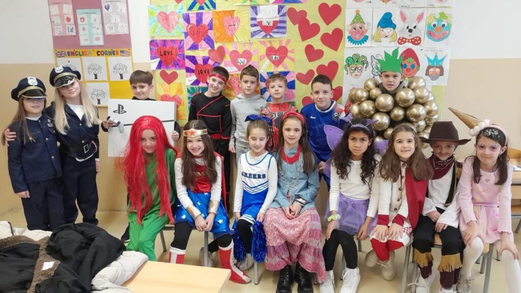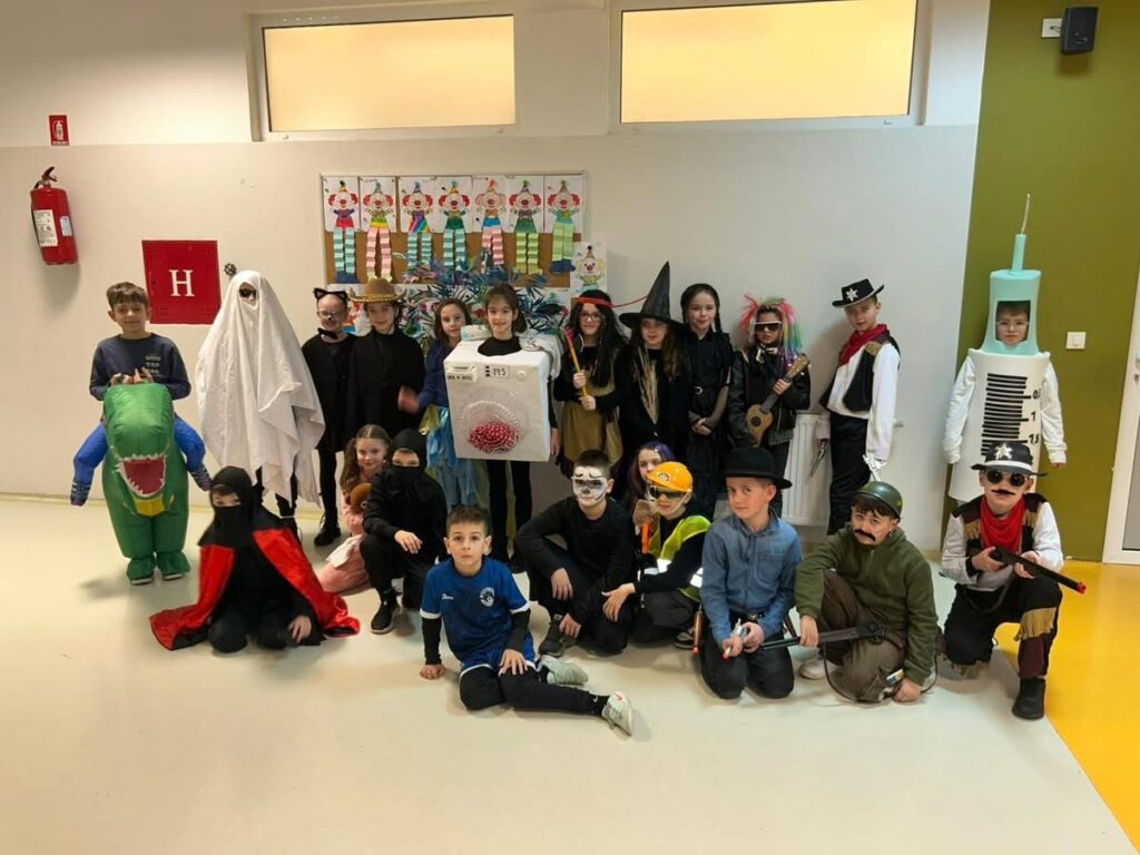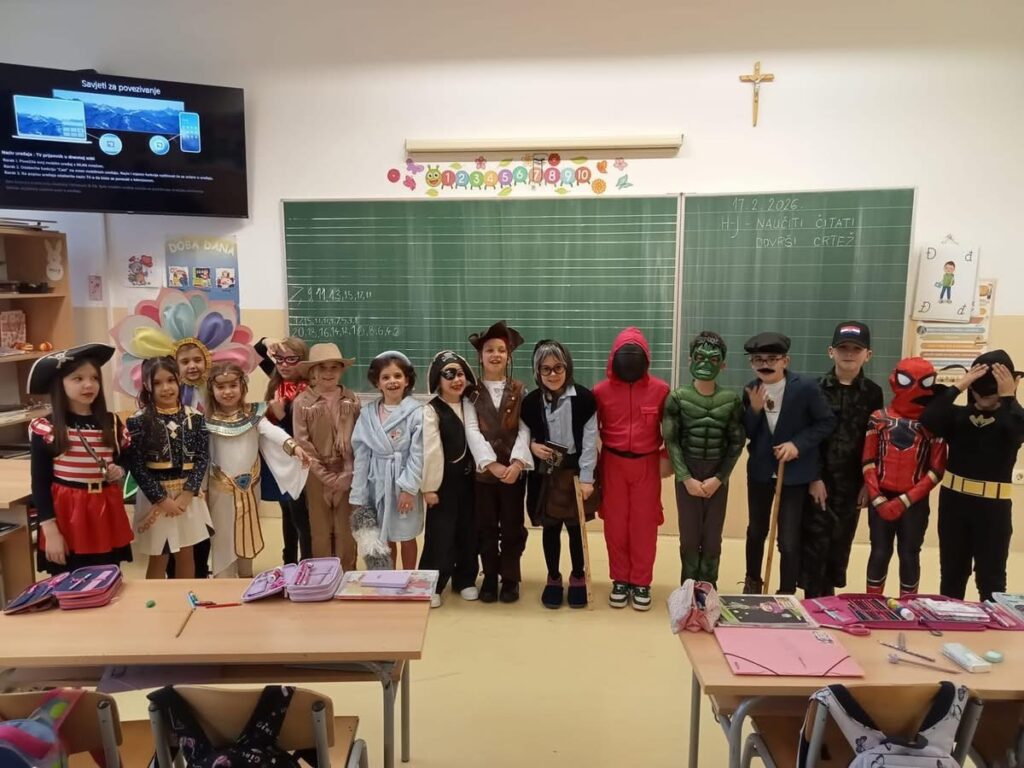 Danas, 17. veljače 2026. godine je bila posebna atmosfera u našoj školi. Maškare su jedan od najsretnijih i najzabavnijih dana u školskoj godini. To je dan kada se učenici i učitelji prepuštaju maštovitom svijetu maski, kostima i smijeha. Svi su se potrudili da se što bolje maskiraju i prikažu svoj kreativni duh. Održan je i izbor za najbolju masku onih učenika koji su sudjelovali u natjecateljskom dijelu. Nagradu za najbolju masku osvojio je učenik 4.a razreda Filip Lončar, drugo mjesto zasluženo je pripalo učeniku 5.a razreda Natku Soldi, dok je 3.mjesto pripalo učeniku 4.b razreda Ivanu Čolaku. Dan je protekao u veselom i šaljivom ozračju. Dio ugođaja i učeničke kreativnosti možete pogledati u galeriji fotografija, a nama preostaje samo jedno, da sljedeće godine budemo još bolji, veseliji i kreativniji.🤡👔🎀