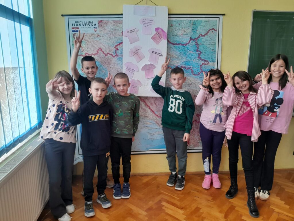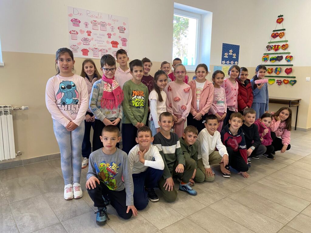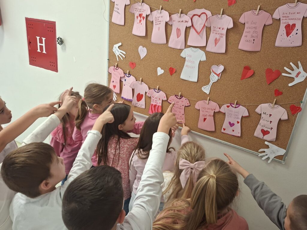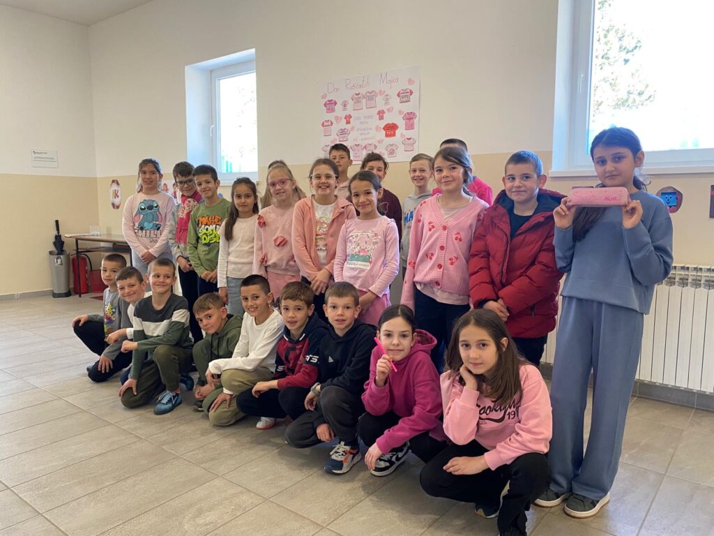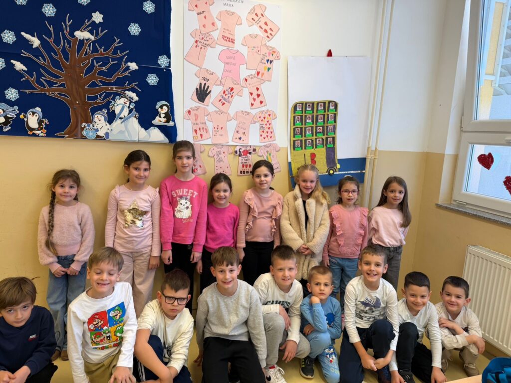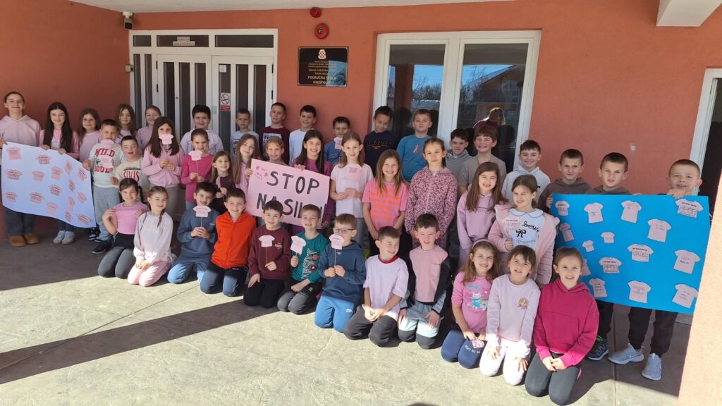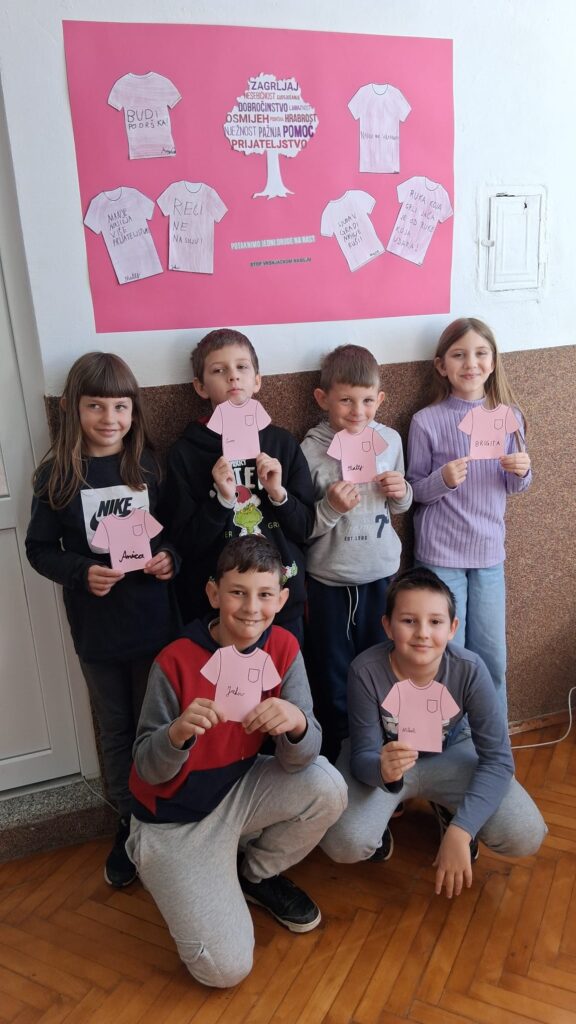 Dan ružičastih majica obilježava se svake zadnje srijede u mjesecu veljači, a proglašen je Međunarodnim danom borbe protiv vršnjačkog nasilja u školama. Tako je naša škola, zajedno s područnim školama, i ove godine obilježila taj dan promovirajući prijateljstvo, ljubav i solidarnost među djecom i mladima. Ovaj dan nas podsjeća na to koliko je važno prihvaćati različitosti i pokazivati međusobno poštovanje. Svi smo posebni i jedinstveni te upravo zbog toga svako dijete zaslužuje poštovanje, sigurnost i podršku. Stoga budimo hrabri i suosjećajni i zajedno stvarajmo svijet u kojem nasilje nema mjesta, jer djeca uče ono što žive.
